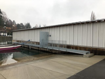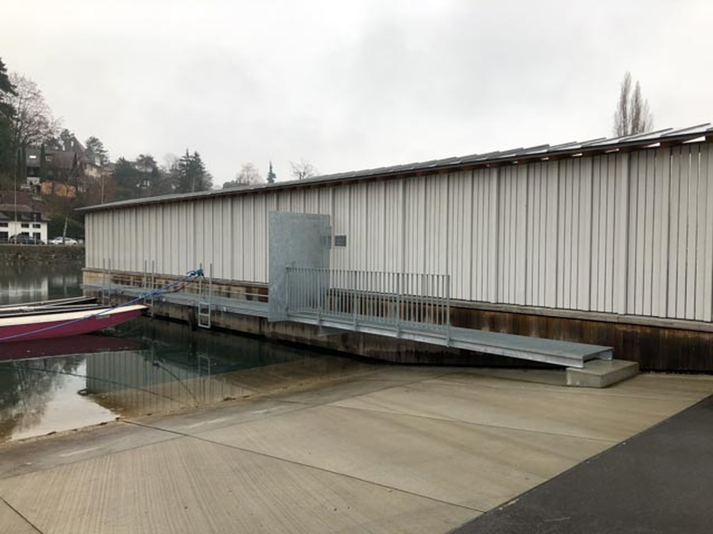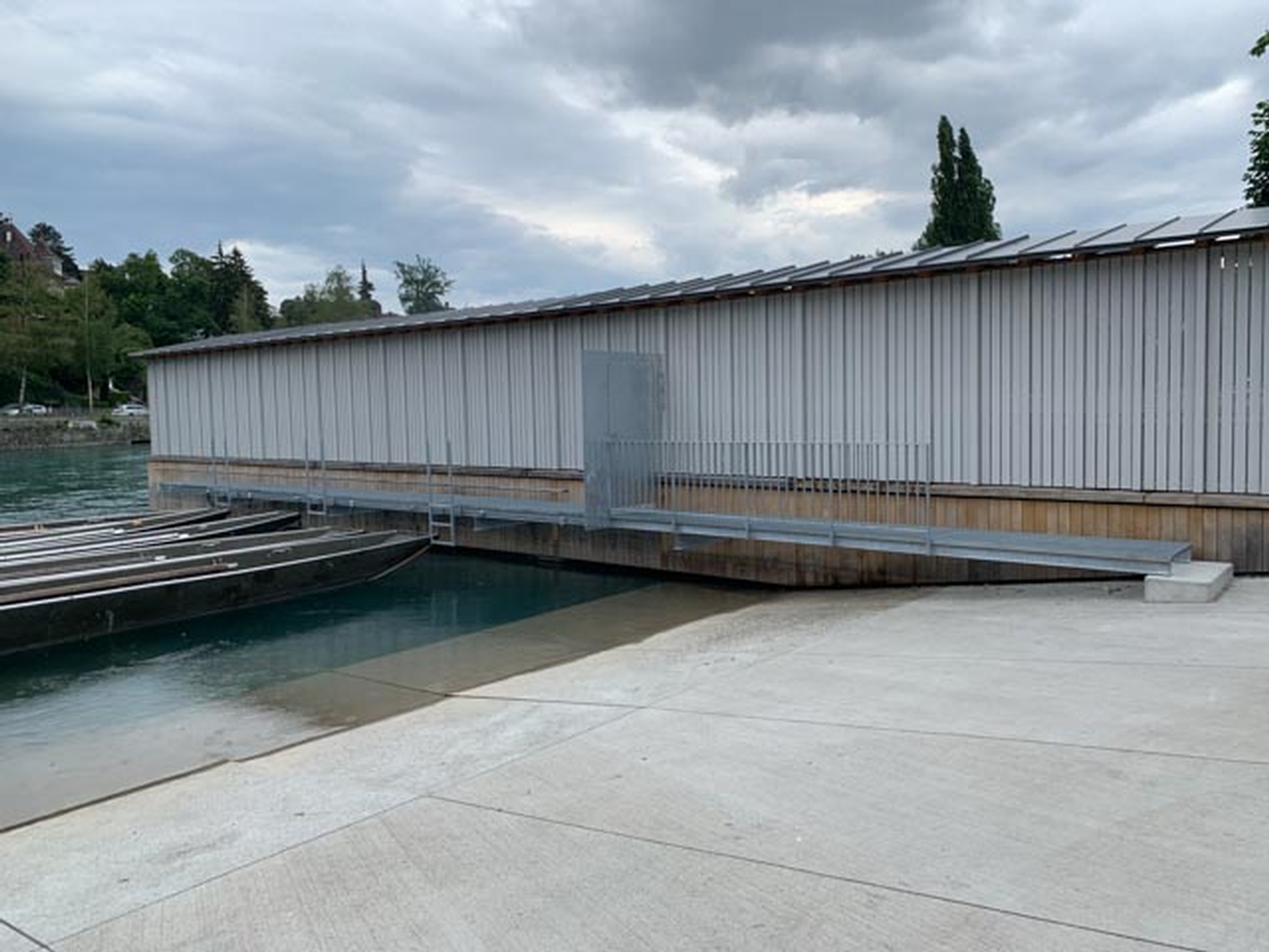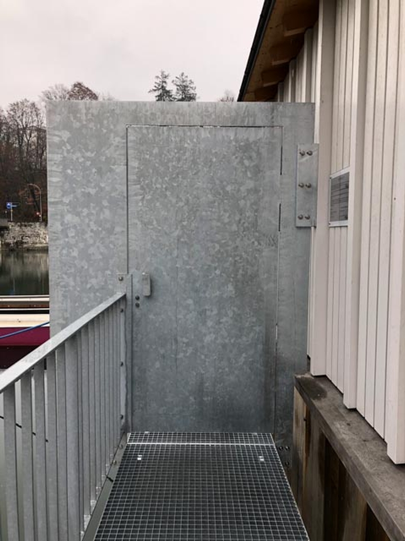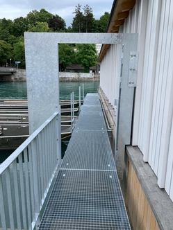 Bootssteg mit Staketengeländer und verzinkter Stahltüre