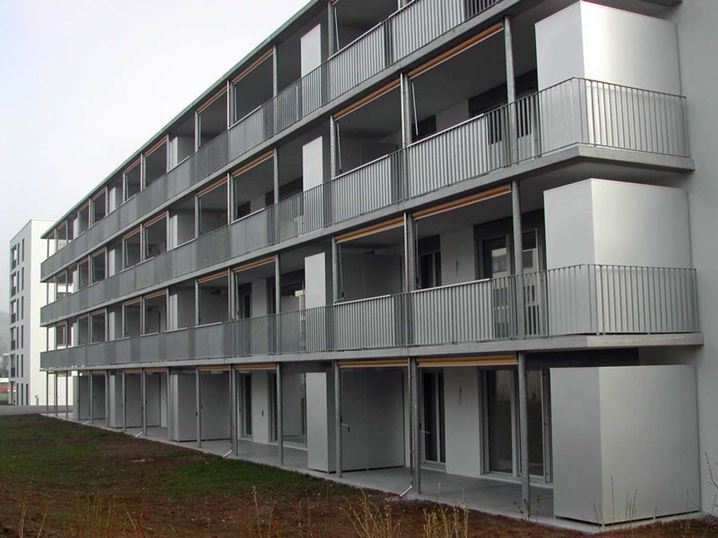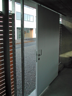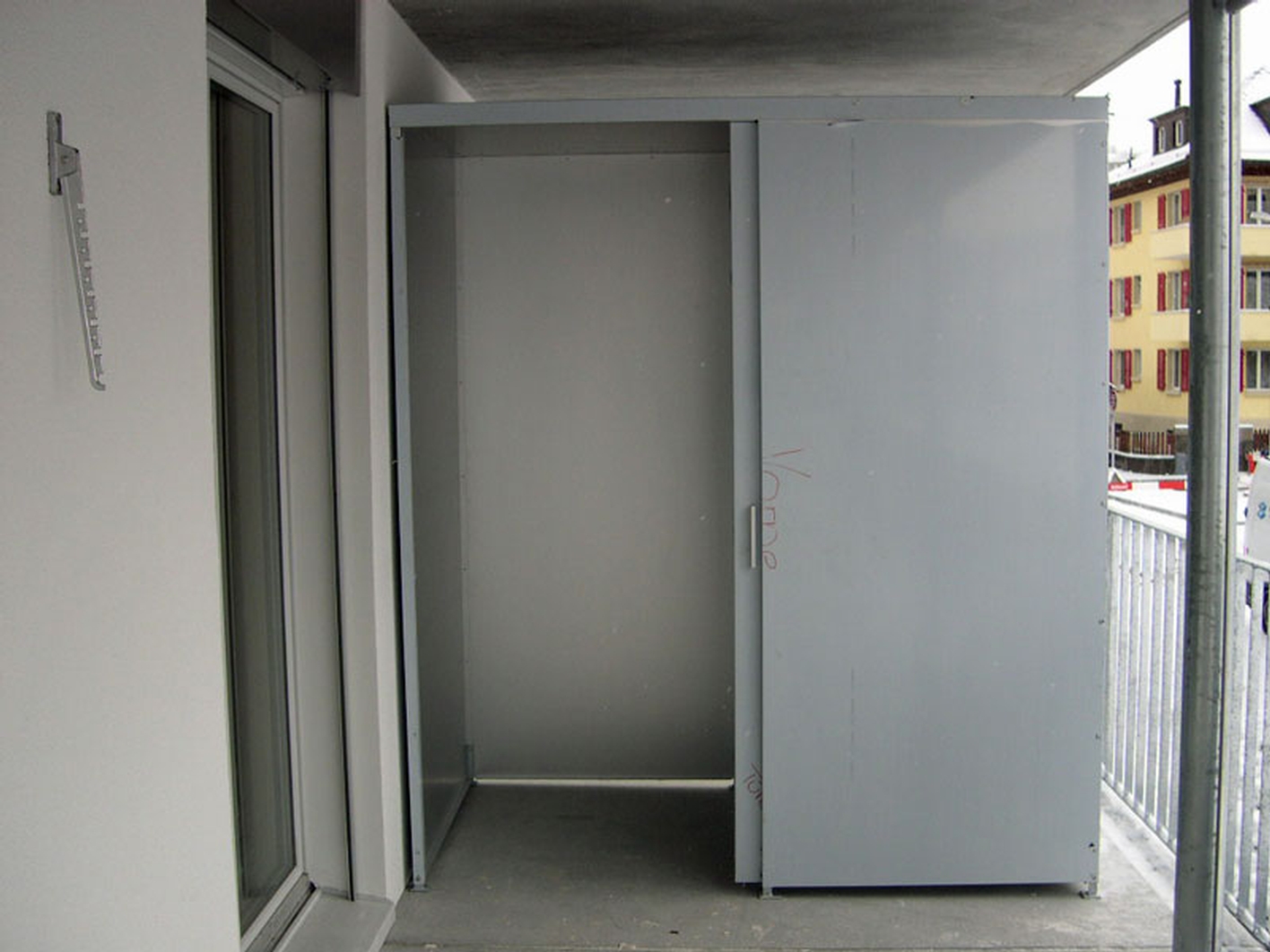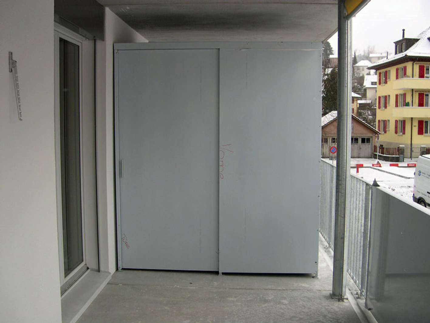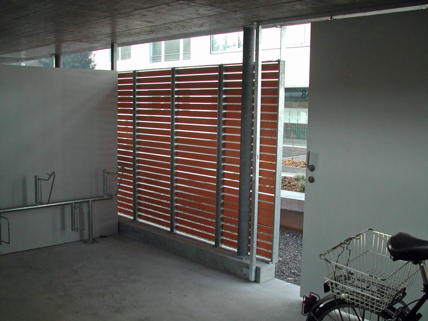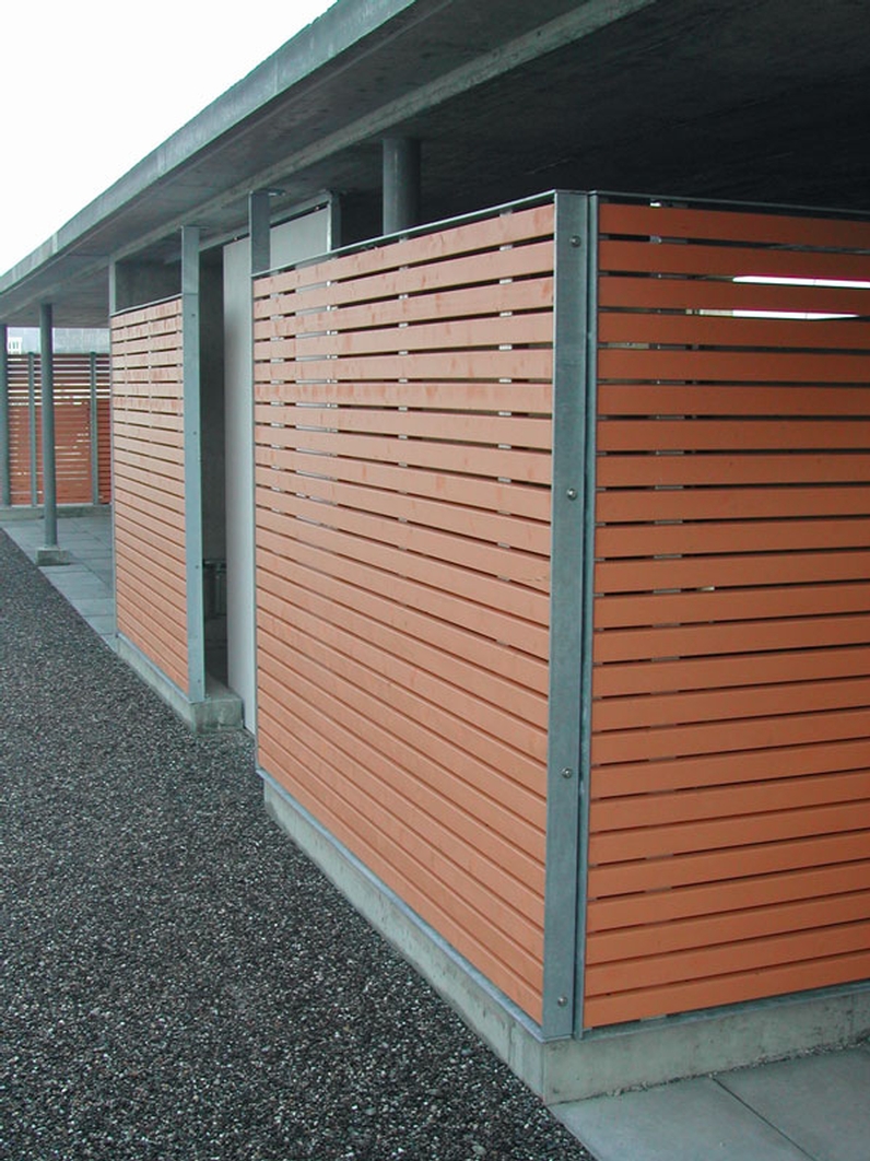 Holzverkleidungen der Velounterstände mit Schiebetüre