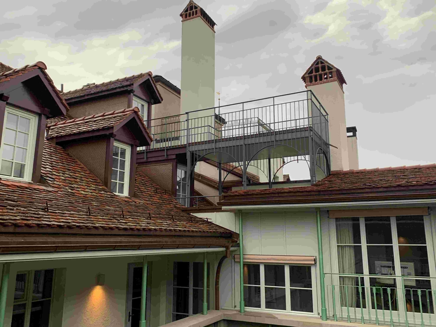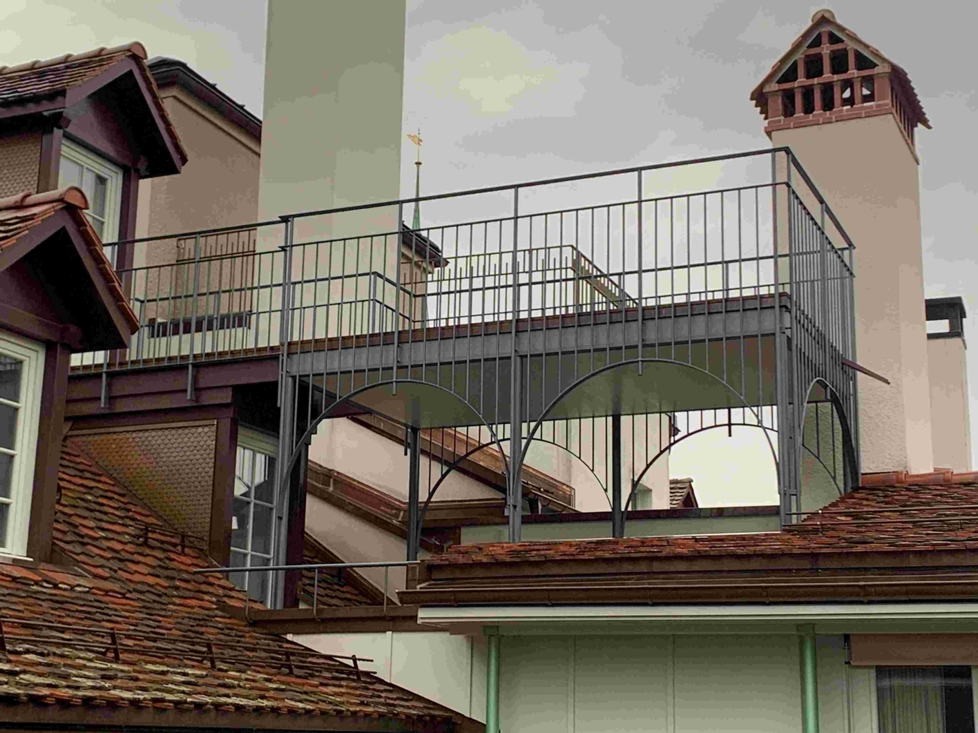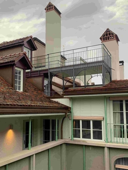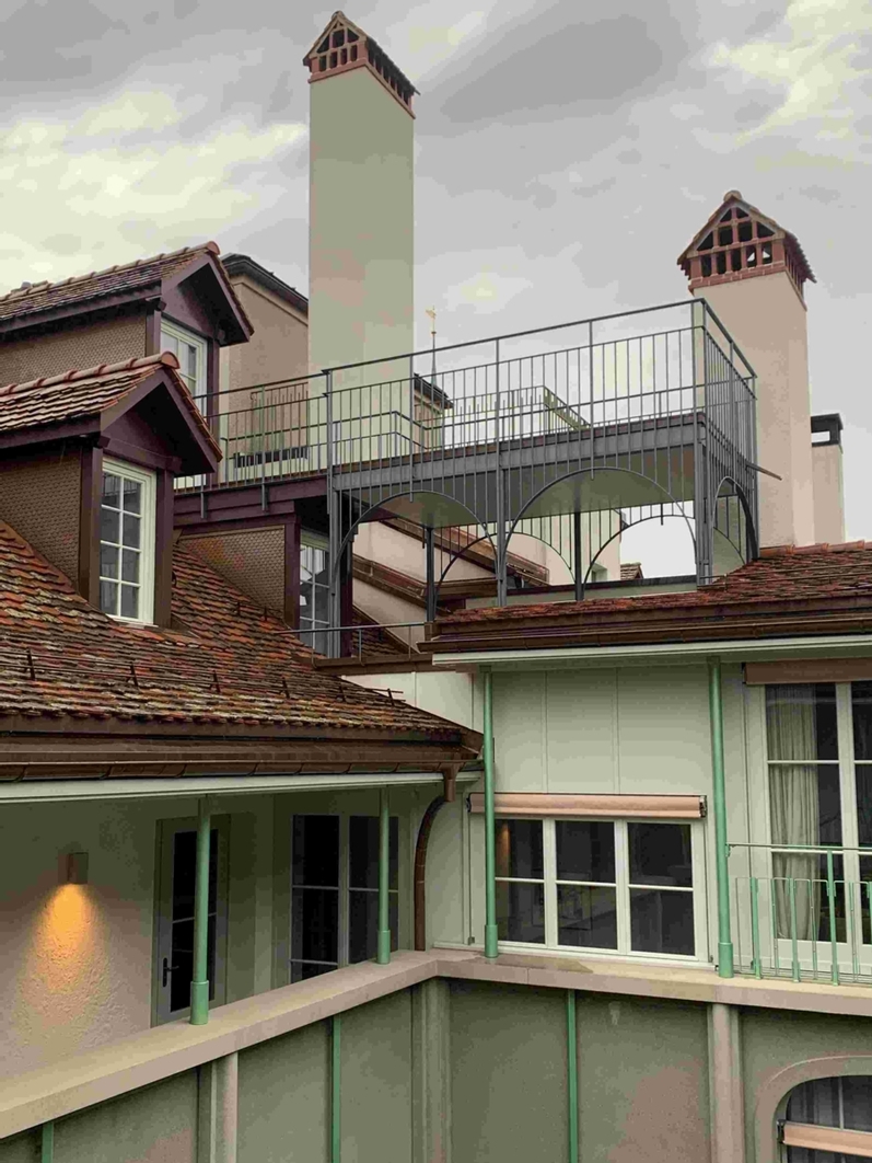 Dachterrasse in der Werkstatt fertiggestellt. Mit Kran über die Dächer geliefert und montiert. Herrlicher Blick aufs Berner Münster.